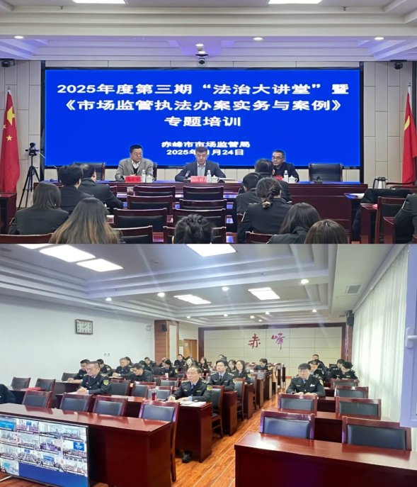 为深入贯彻落实全面依法治国战略部署,扎实推进市场监管法治建设,持续强化执法队伍专业化能力,着力解决执法办案中的难点堵点问题,11月24日,赤峰市市场监管局组织举办了2025年度第三期“法治大讲堂”暨《市场监管执法办案实务与案例》专题培训。本次培训采用“主会场+分会场”的授课模式。市局各科室(局)共计40余人在主会场参加培训,12个旗县区局共计500余人在分会场通过视频同步参加了培训,实现了全市市场监管执法骨干的培训全覆盖。