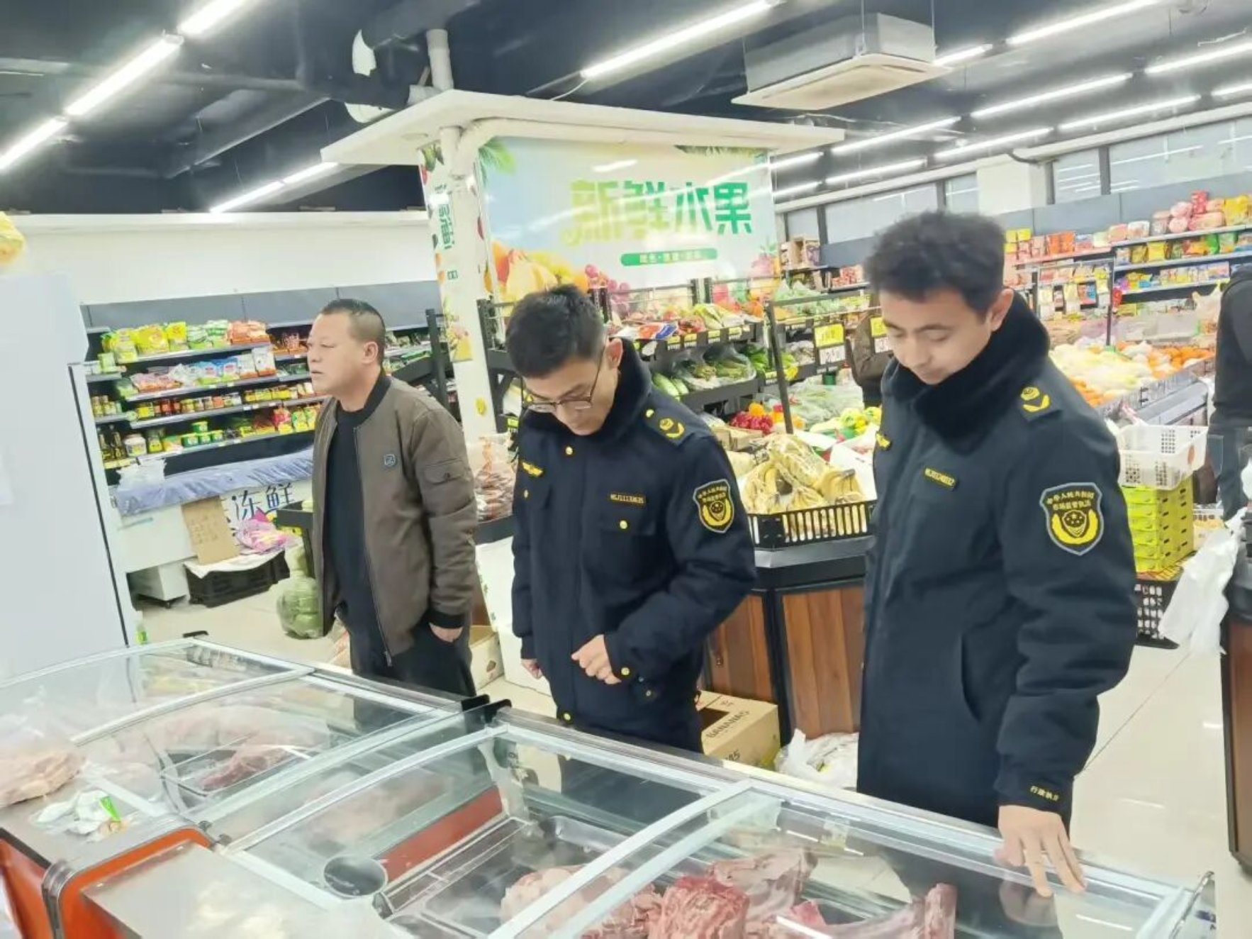 执法人员聚焦农贸市场、商超生鲜区、肉类专卖店等经营场所,以猪肉、牛肉、羊肉及各类肉制品为重点品类,对经营主体资质是否合法有效,肉类来源是否可溯可控,动物检疫合格证明、肉品品质检验合格证明及进货票据是否完整,进口肉类是否附有入境货物检验检疫合格证明,肉类产品的储存与经营条件是否达标,冷藏冷冻设备运行是否正常、温湿度是否符合要求,肉类产品是否分类存放,“三防”设施是否配备到位,是否存在以次充好、以低价肉冒充高价肉等欺诈行为,标签标识是否清晰标明肉类名称、产地、生产日期、经营者信息等关键内容进行了全面检查。同时,执法人员积极向各经营者宣传了食品安全法律法规及有关知识,督促其严格履行食品安全主体责任,从源头保障肉品质量安全,做到诚信守法经营。