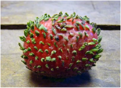 不少人可能遇到过这种现象:甜瓜、番茄、南瓜等果实的表面毫无异常,切开一看,里面居然诡异地长出了许多小芽,甚至有的草莓种子会在果实表面长出小绿叶,看着让人头皮发麻。这会不会是生长调节剂滥用的结果?