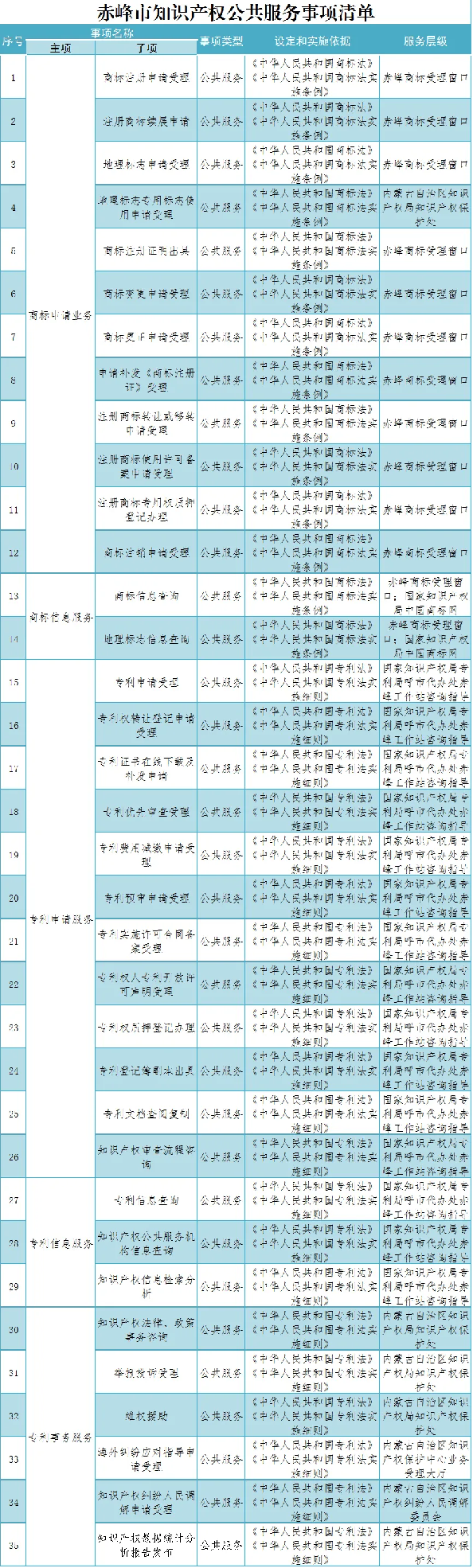 为进一步推进知识产权公共服务标准化、规范化、便利化,赤峰市市场监管局围绕“高效办成一件事”改革目标,梳理编制了《赤峰市知识产权公共服务事项清单(2025年版)》(简称“服务清单”)和商标、专利《一次性告知单(2025年版)》(简称“告知单”),全面促进知识产权公共服务提质增效。